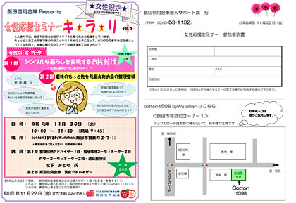 申込書に必要事項をご記入の上、2月6日(水)までにFAXをお送りいただくか、飯田信用金庫各支店窓口にご提出ください。 |