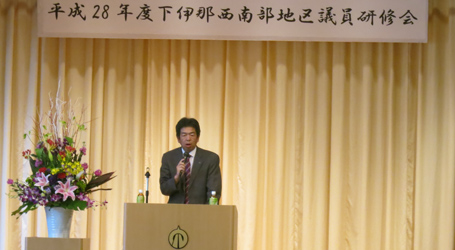下伊那郡西部地区・南部地区の合同研修会が売木村文化センターで開催され、講師として招かれました。当日は73名の議員・議会事務局職員のほか来賓の下伊那西南部首長に「リニア報告書」と前月発表した三遠南信調査の内容を説明しました。
