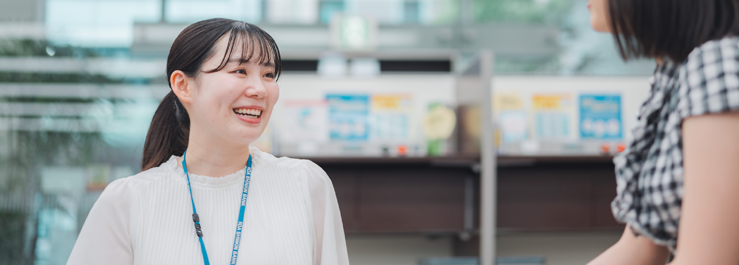 窓口係として口座開設から入出金、納税、振込までのさまざまな手続きや、ライフプランに合わせた金融商品のご提案などを担当しています。以前、何度か電話でご対応し、実際にはお会いしたことはなかったお客様から、「あなたの対応はとても素敵で、ファンになりました」と伝えていただけて嬉しかったです。電話越しでも気持ちはきちんと伝わるのだと実感しました。