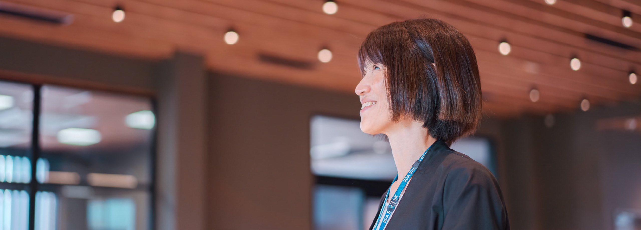 キャリアビジョン研修は、会社のなかで“自分のあり方”を見直すきっかけになりました。私は会社のみんなが、心身的にも社会的にも“よい”状態である「ウェルビーイングな状態でいてほしい」と気付いたことから、国家資格キャリアコンサルタントやコーチングなどの資格を取得しました。職場環境を“よい”状態へ働きかけられる存在になりたいと思っています。